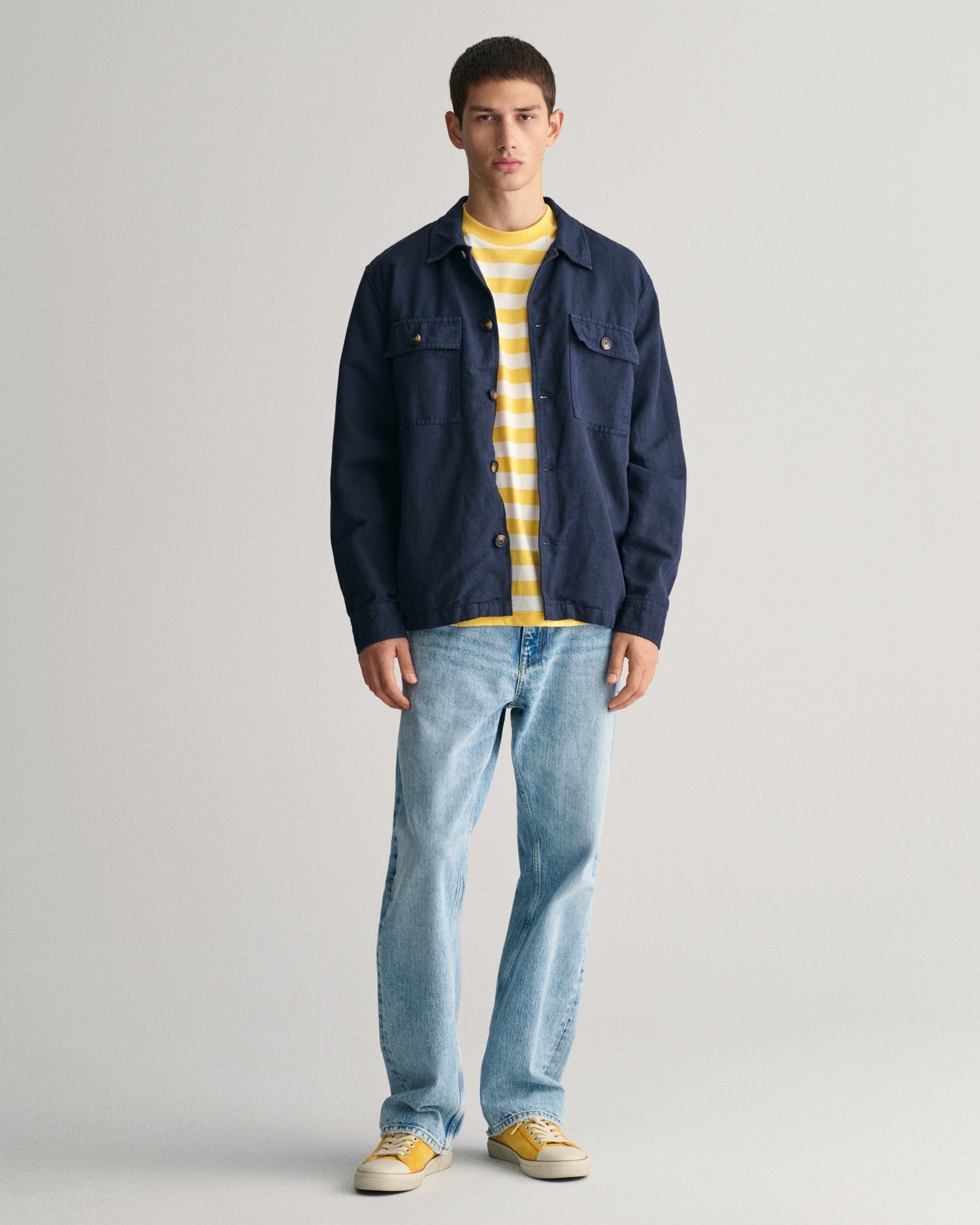 Classic, casual and subtly nautical, this T-shirt is crafted from 100% cotton and features yarn-dyed stripes. Cut for a regular fit with a crew neck, it is complete with ribbed detailing at the neck and a logo embroidered at the chest.