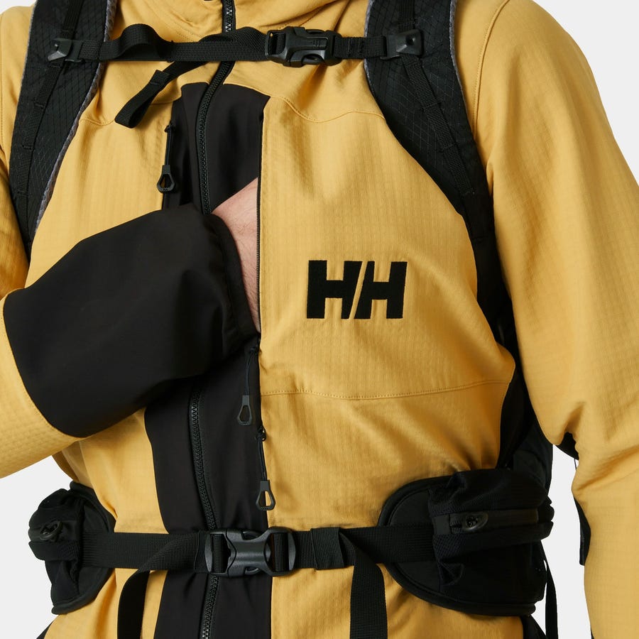 This softshell jacket is made for high-intensity activities like ski touring where breathability and moisture management are key. Made with feedback from professional athletes who needed workwear for their days off, we combined three fabrics to deliver a unique body-mapped combination of stretch, durability, and breathability. With safety in mind, the opening in the front enables quick and easy access to a beacon. A water-resistant exterior and an adjustable hood deliver protection from the elements while stretch cuffs make for an excellent fit with gloves. Finally, this softshell features a dual chest pocket for easy access even when wearing a backpack and RECCO reflectors for searchability.