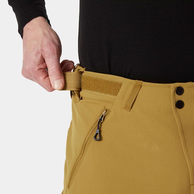 We designed the Odin hiking pants with insight from search and rescue professionals. It's water-resistant to protect you in changeable conditions. The fabric is an extremely durable and flexible blend, with 4-way stretch for maximum freedom of movement. The details count. We added an adjustable and pack-compatible waist. We also reinforced the insteps, made snap adjustments on the trouser hem, and added a zippered pocket made for notebooks. A Recco transponder means you're findable in the wilderness.