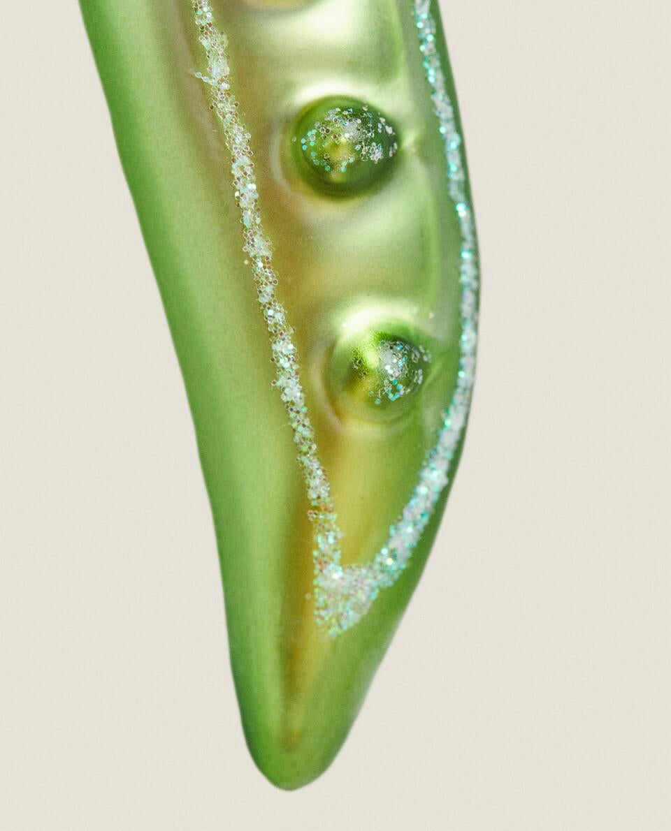 Glass Christmas tree decoration in vegetable shape with glitter details.