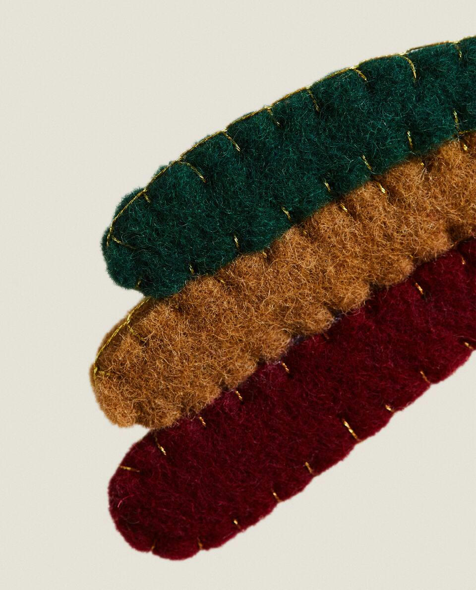 Felt Christmas tree decorations in the shape of a shooting star.