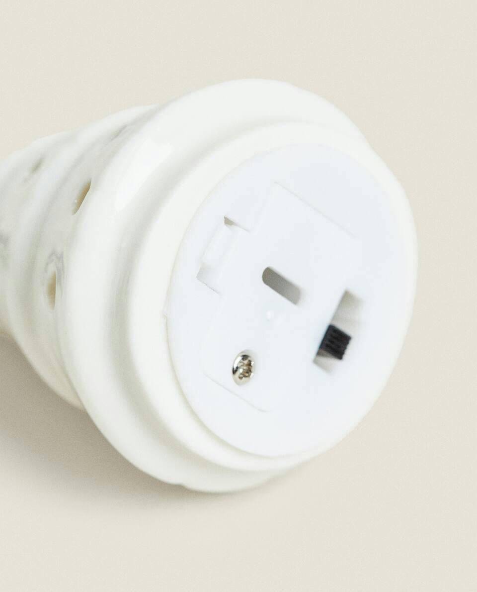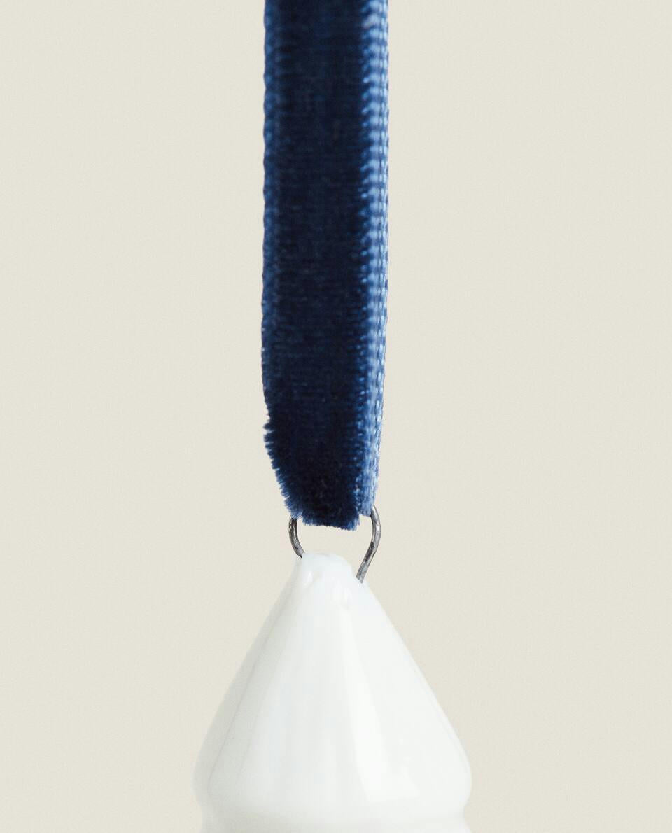 Porcelain Christmas tree decoration in the shape of a Christmas tree with light and a velvet ribbon for hanging.Batteries included.