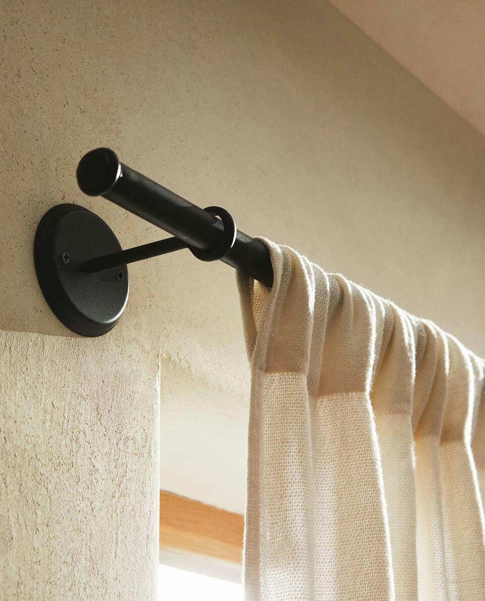 Iron curtain rail.Includes two anchors with holes for attaching to the wall.