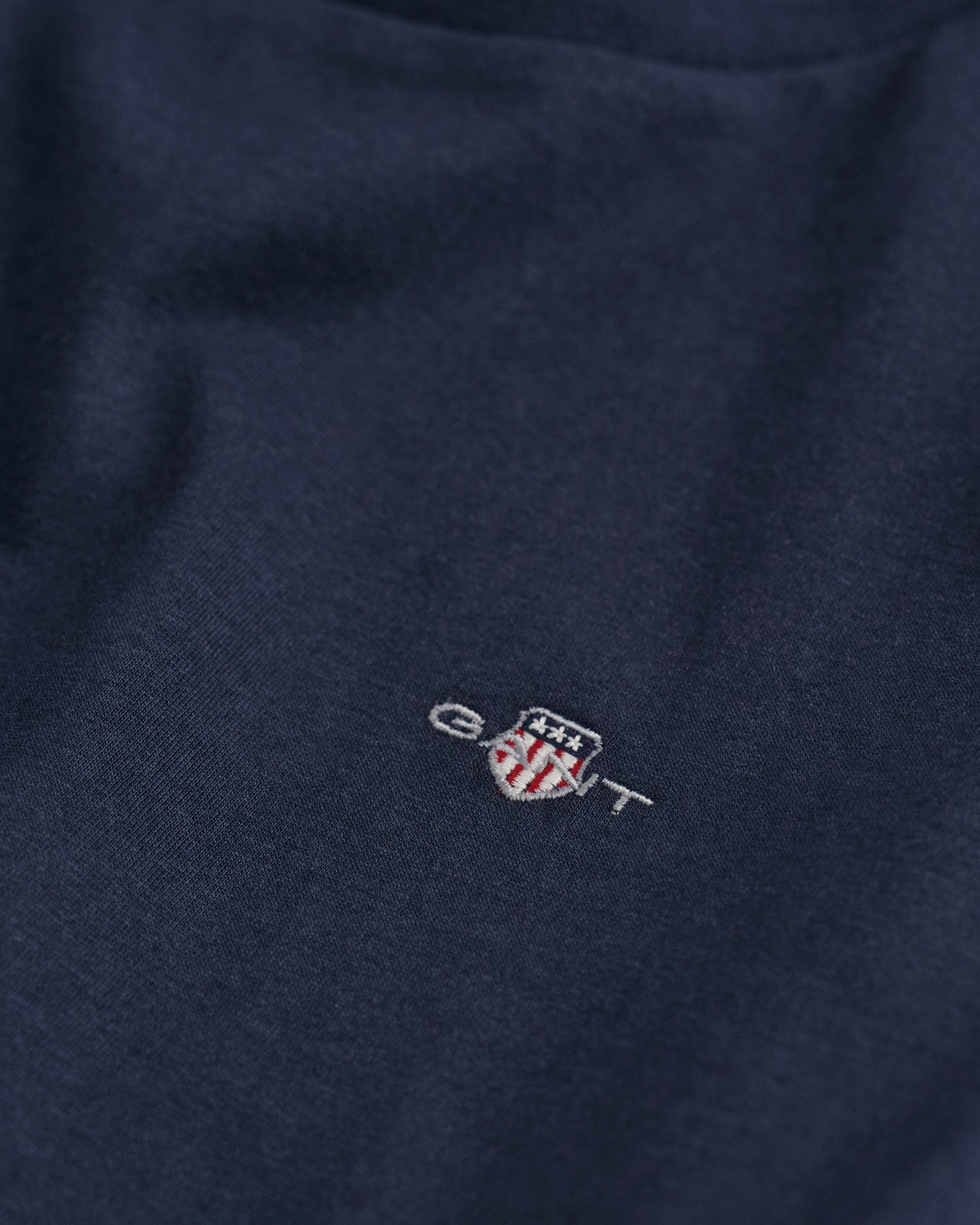 Crafted in soft cotton, this single jersey tee features a small-scale shield graphic embroidered at the chest. An easy, everyday basic, it has a regular fit, short sleeves and a classic crew neck.